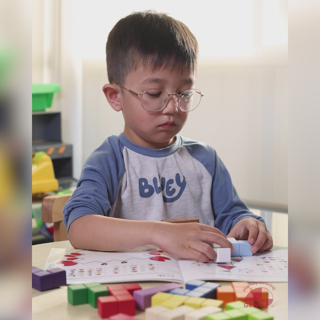 Build, stack, and solve over 100 puzzles using vibrant wooden blocks. A creative challenge that grows with your child!